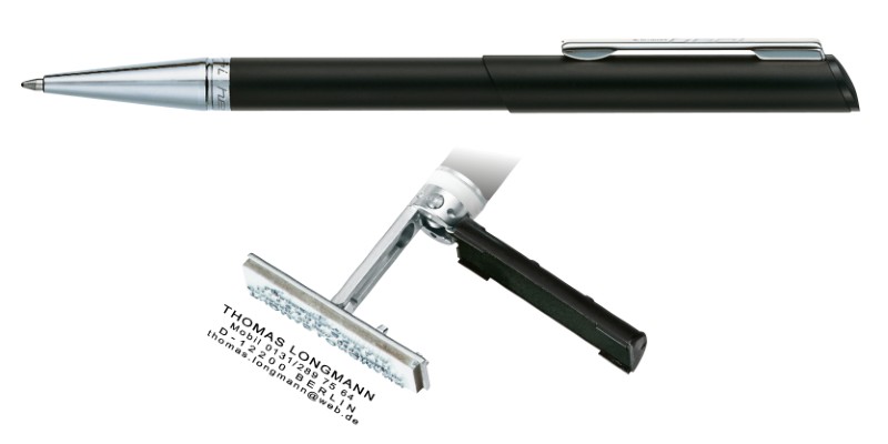 Propisovací tužka HERI Diagonal s vestavěným razítkem až pro 4 řádky textu.
